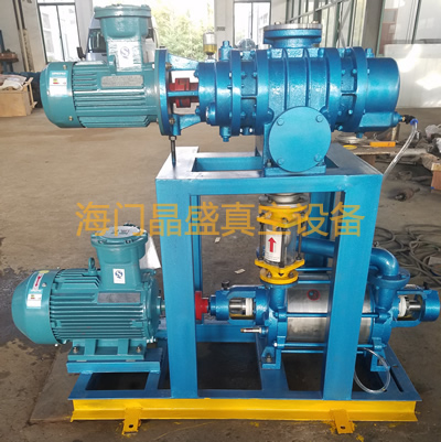 (1)羅茨泵-水環(huán)泵:機組中水環(huán)泵的作用是造成羅茨泵所需的預(yù)備真空,一般情況,單級水環(huán)泵極限真空度不高,而目前我國生產(chǎn)的羅茨泵要求的預(yù)真空又較高,故實際上一般不用單級水環(huán)泵作為羅茨泵的前級泵,而用極限壓力較低的雙級水環(huán)泵作為前級泵使用,還可以降低機組的極限壓力。一臺羅茨泵與一臺水環(huán)泵的極限壓力是400P a,可滿足一般的真空需求,但使用范圍受到一定限制,若用兩 臺羅茨泵串聯(lián)再與水環(huán)泵組合,就能大大提高機組的極限壓力(可達25P a)。故在這種類型里通常見到的是兩臺羅茨泵串聯(lián)后再用雙級泵作前級泵組成機組。如果需要更高的極限壓力,可用三臺羅茨泵與水環(huán)泵組合,它的極限壓力可達1Pa。